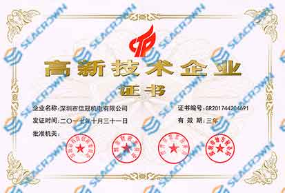 被評為國家高新技術企業并頒發證書