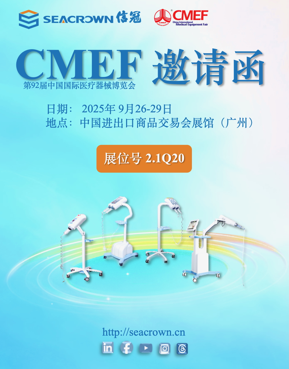 第92屆中國國際醫(yī)療器械博覽會 (CMEF) 將于今年九月盛大開幕——信冠將在美麗的廣州恭候您的光臨。