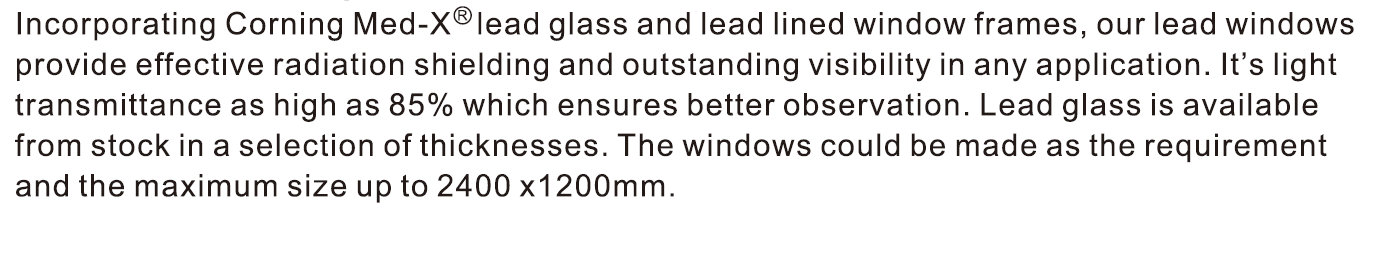 X-ray protective observation windows are used to give full protection to the total structural opening based on the energy emitted by the X-ray or Gamma Source.